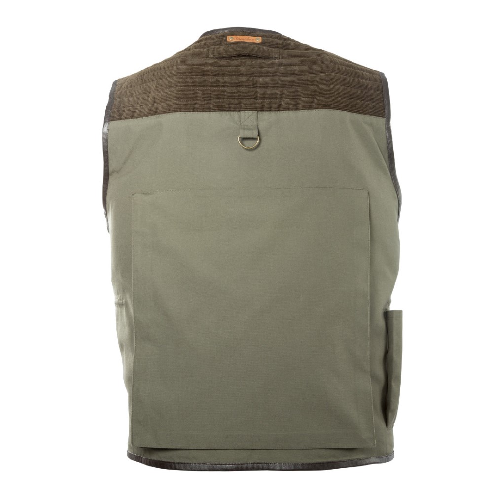 Made from a hard-wearing polyester cotton with a brushed outer surface. The shoulders are reinforced with matching corduroy, which helps spread the load. Velcro epaulettes lock fishing bag straps in place, so they don't slide off while walking. For extra warmth there is a thick, brushed cotton check lining and all the perimeter hems are reinforced with leatherette trim for extra wear. An inside waist adjuster cord with toggle-locks ensures a snug fit.