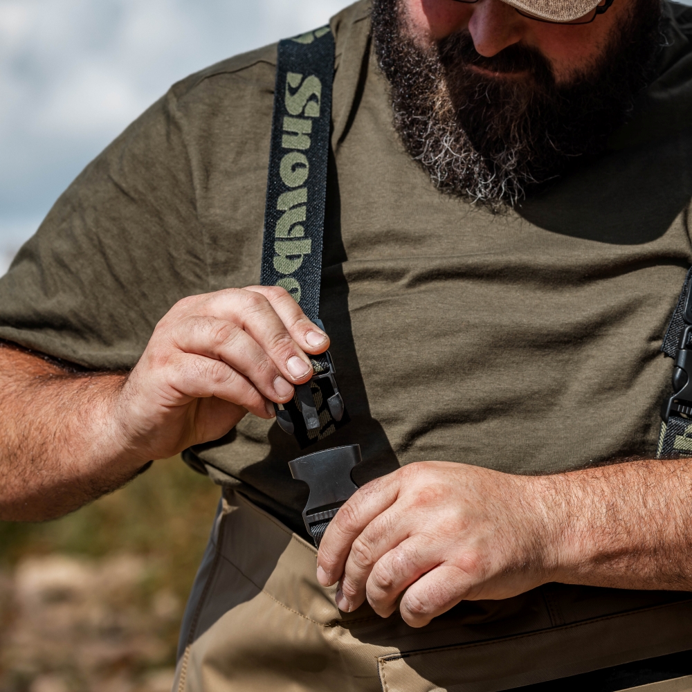 - Opposed buckles allow waders to be rolled down into a waist wader