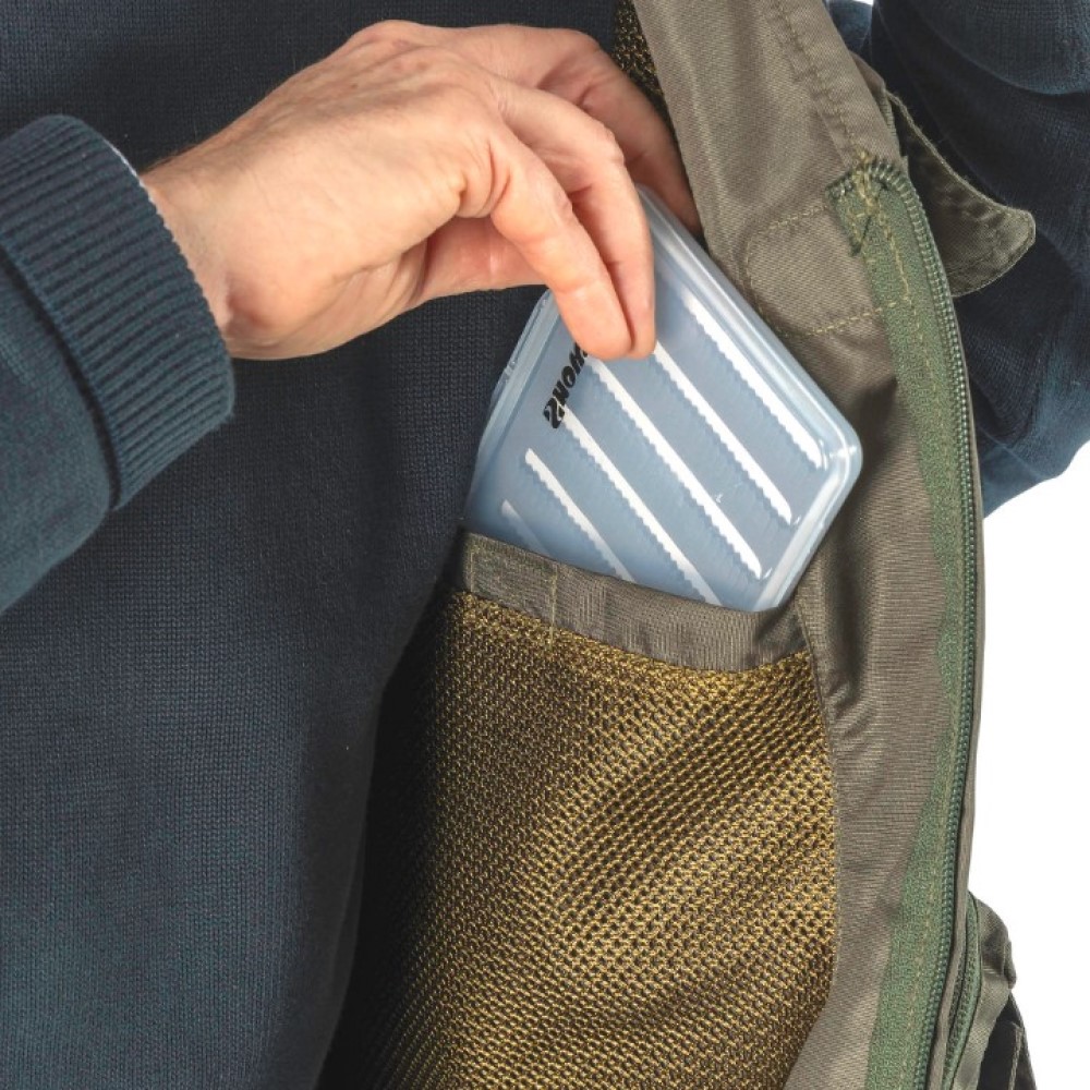 - 3 main front box zipped fly box pockets