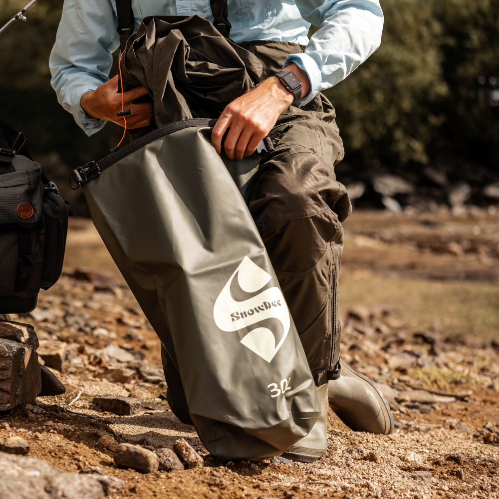 Made using a 100% waterproof heavy-duty 500g/m² laminated PVC/Nylon/PVC material these Dry-Sacks are made to keep the wet out. All three sizes feature a stiffend, reinforced top band, which can be rolled down and clipped together to provide a 100% waterproof, airtight bag. D-rings each sideonto which are clipped adjustable carry-straps - a single shoulder strap on the small size and twin straps on the medium and large, so they can be worn as a rucksack.