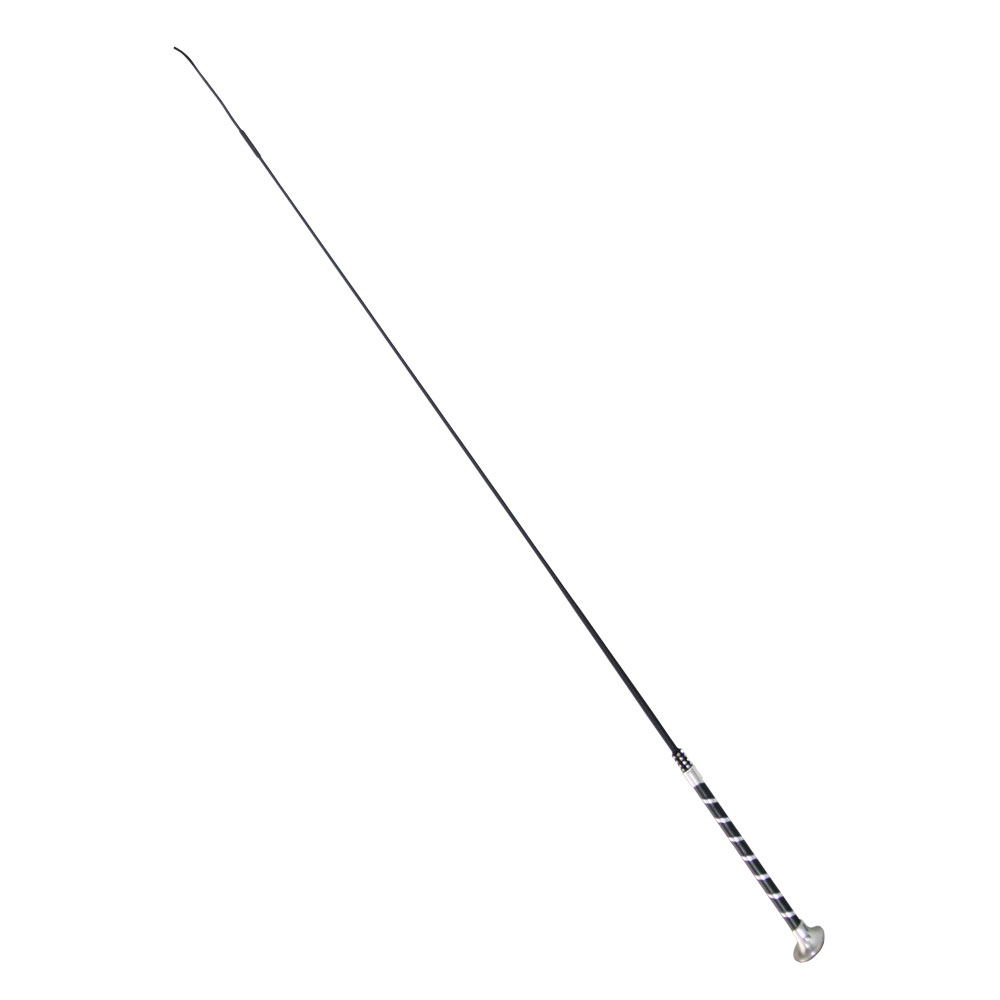 A versatile dressage whip with a black and white leather wrapping handle. A 110cm dressage whip that has a black nylon shaft and lash which is suitable for both everyday and RC competition use. It also has a large aluminium cap with Snowbee's logo which makes it both stylish and practical.