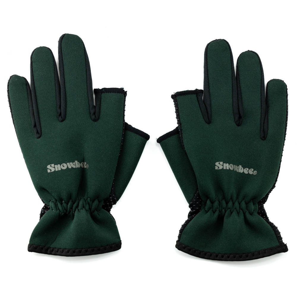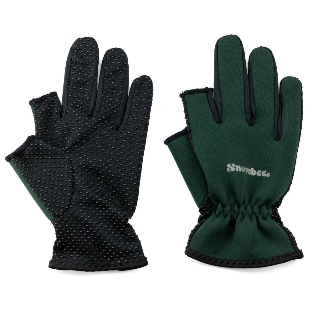 A lightweight neoprene glove with a nylon Jersey knit palm with rubberised 'dots' pattern for extra grip. The thin palm of the Snowbee material allows the gloves to be worn whilst fishing, shooting or to work in and still feel everything, whilst the Neoprene back gives added warmth, where it's needed. The tips of the thumb and index finger are left exposed to allow tying of knots, or loading, without removing the gloves.