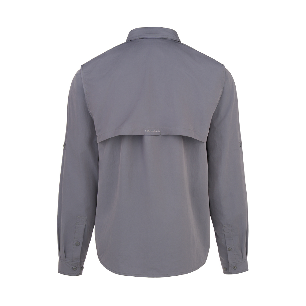 - Button-down collar can be extended with an additional Velcro-tab concealed fold-up panel for superior sun protection on back of the neck