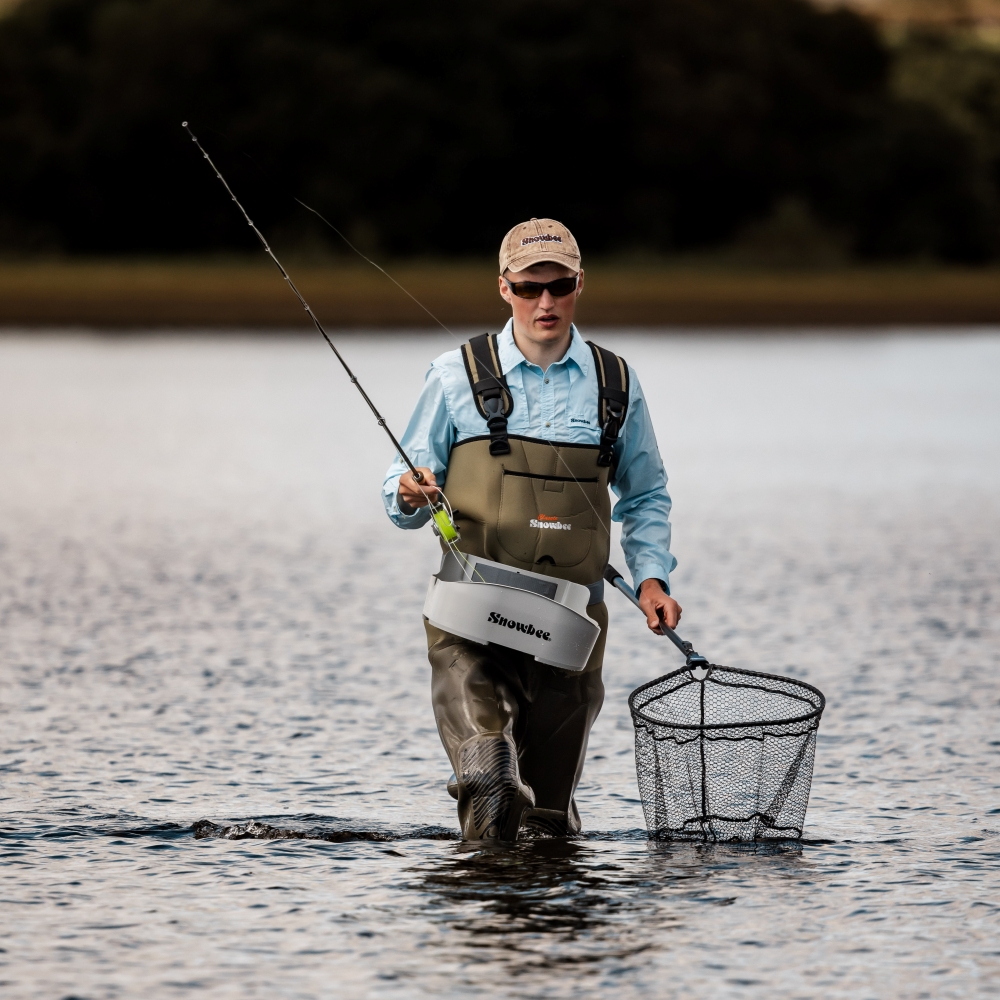 Snowbee's new range of Ranger Folding Head Landing Nets comprises of three models to suit most fishing requirements. All share the same solid aluminium hinge mechanism, which combines light weight with rugged strength and a simple, efficient locking operation. Simply flick the net head open and a spring-loaded, sliding nylon collar locates every time into the hinge block, providing a rigid, reliable net frame.. The tubular aluminium handles have strong, nylon belt/D-ring clips, plus non-slip foam grips. The lightweight, tubular aluminium frames support the knotless, rubber coated mesh bag, making these one of the most practical ranges of nets we’ve ever made