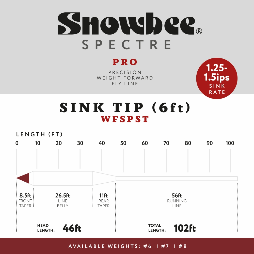 The SPECTRE PRO Precision Weight Forward Sink Tip (6ft) line is a must-have for any nymphing aficionado. The slow sink tip allows for a very natural depth and angle, plus improved chance of setting the hook versus a floating line. It has a wonderfully balanced profile for outstanding performance for a host of methods, casting greater distances with very little effort and outstanding presentation.