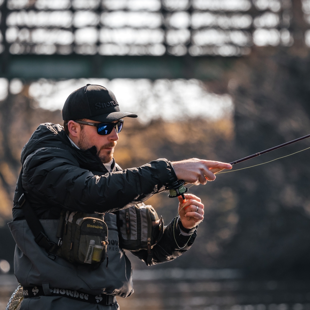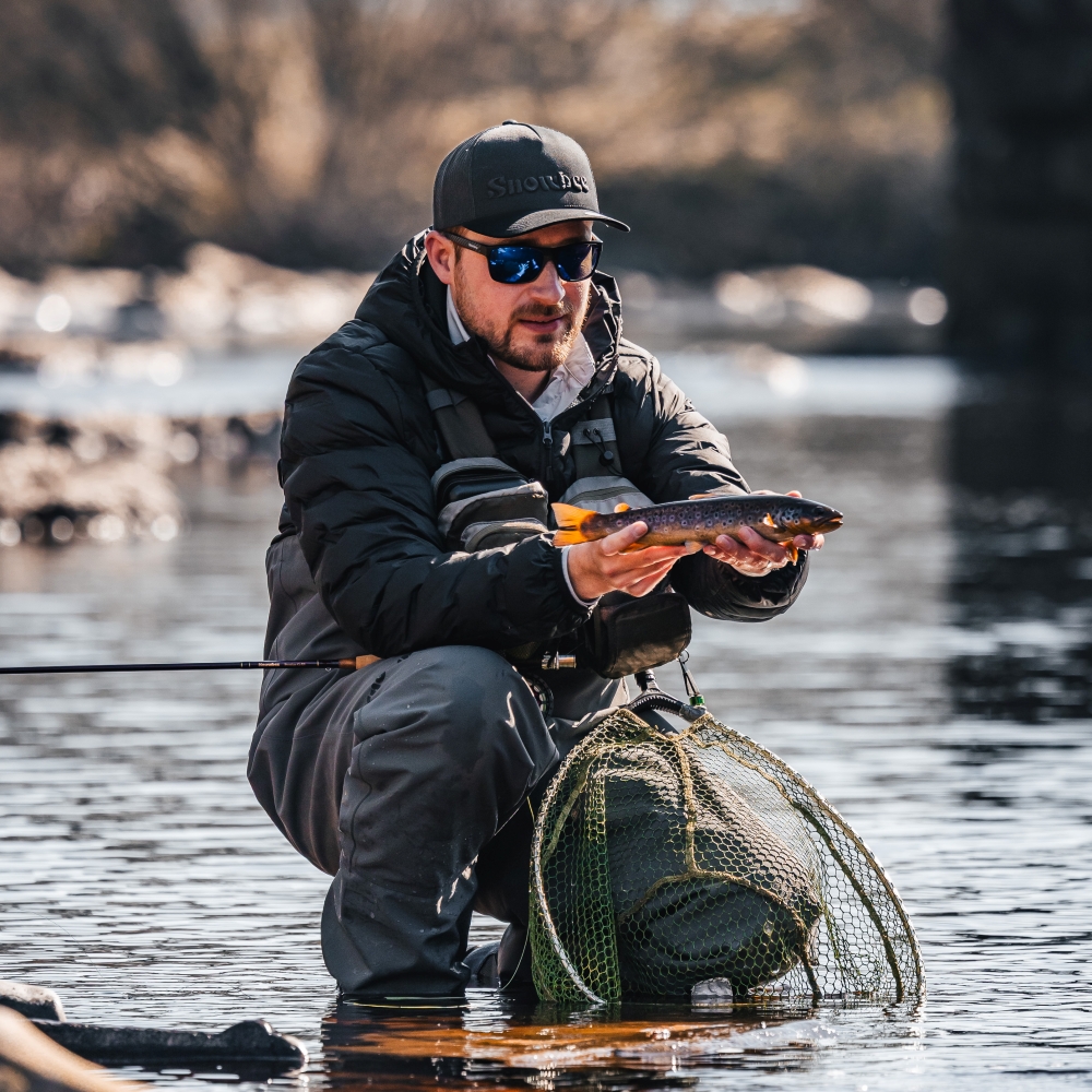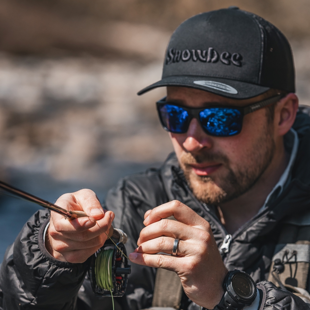 A stylish and modern "Snap-back" trucker cap with mesh rear panels and quality piped Snowbee logo embroidered to the front.
